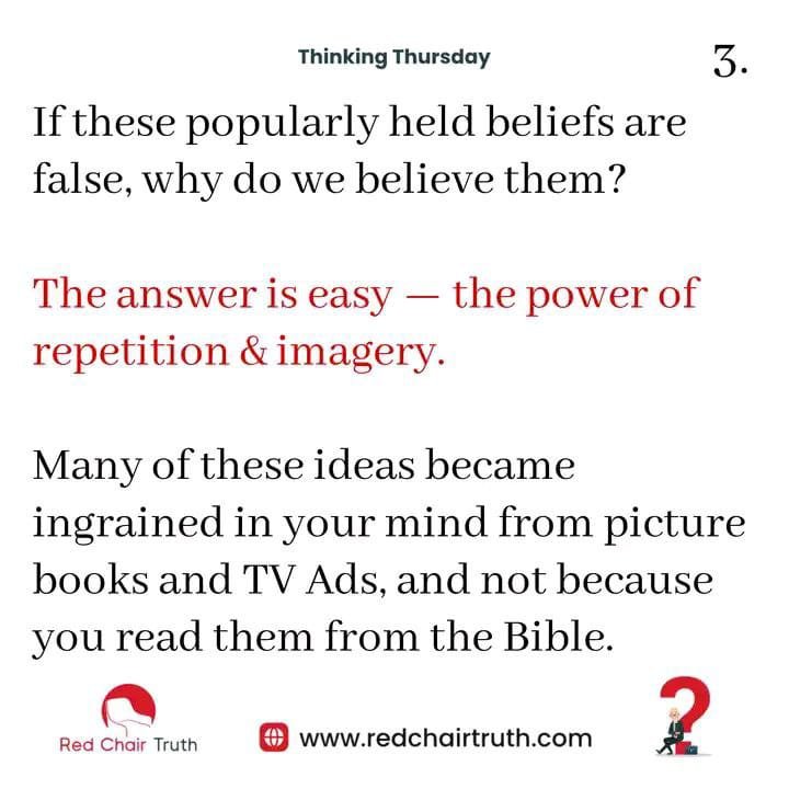 Many of these ideas became ingrained in your mind from picture books and TV Ads, and not because you read them from the Bible.
