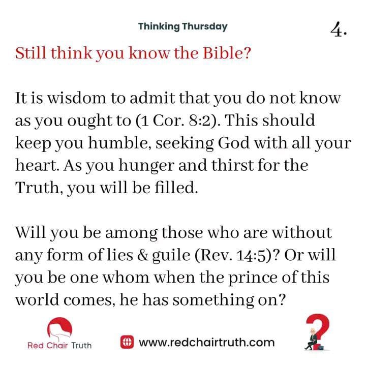 It is wisdom to admit that you do not know as you ought to (1 Corinthians 8:2). This should keep you humble, seeking God with all your heart. As you hunger and thirst for the Truth, you will be filled.
