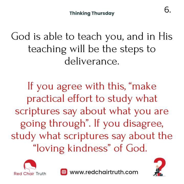 God is able to teach you, and in His teaching will be the steps to deliverance. If you agree with this, make a practical effort to study what the scriptures say about what you are going through. If you disagree, study what the scriptures say about the “loving-kindness” of God.