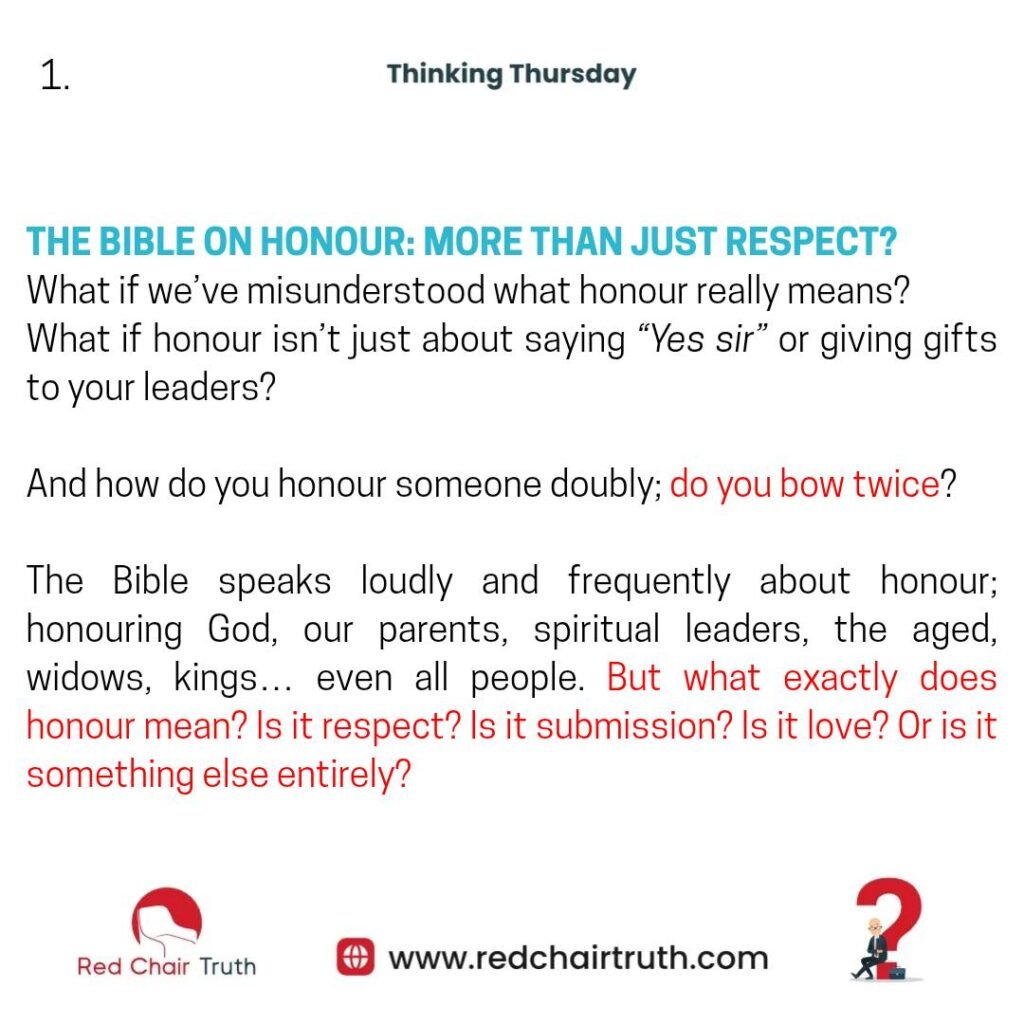 The Bible speaks loudly and frequently about honour; honouring God, our parents, spiritual leaders, the aged, widows, kings… even all people. But what exactly does honour mean? Is it respect, submission? Is it love? Or is it something else entirely?
