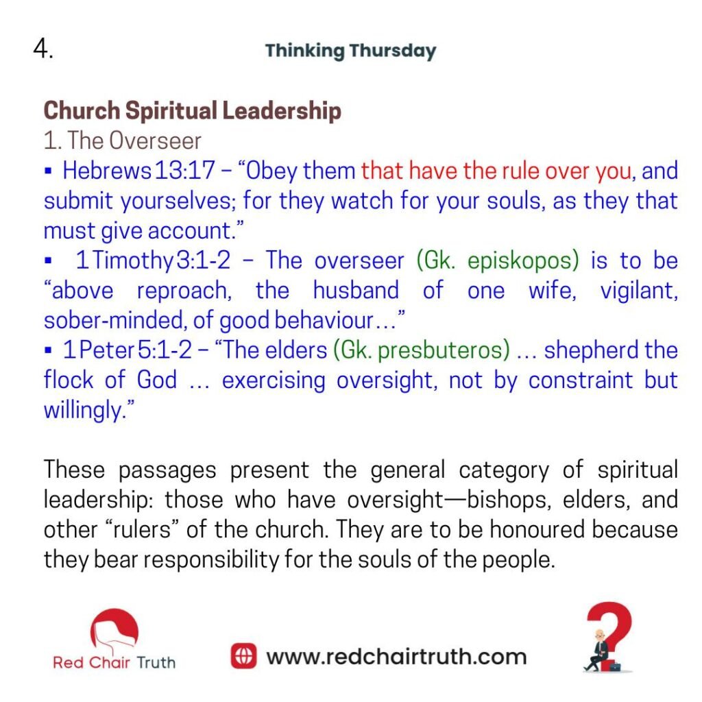 In both cases, believers are instructed to render honour whether as respectful submission to church leaders or as grateful deference to spiritual mentors. This dual framework promotes order, humility, and the flourishing of God’s people.