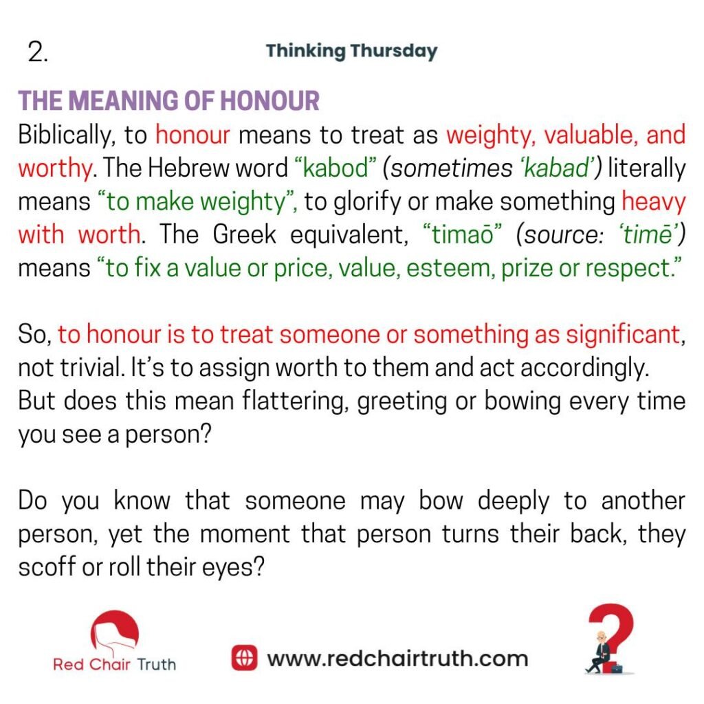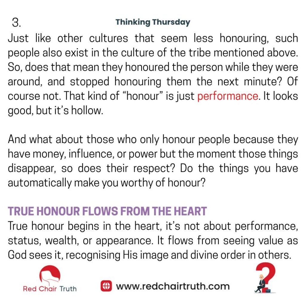True honour begins in the heart, it’s not about performance, status, wealth, or appearance. It flows from seeing value as God sees it, recognising His image and divine order in others.