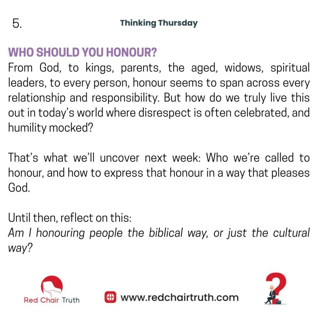 That’s what we’ll uncover next: Who we’re called to honour, and how to express that honour in a way that pleases God.