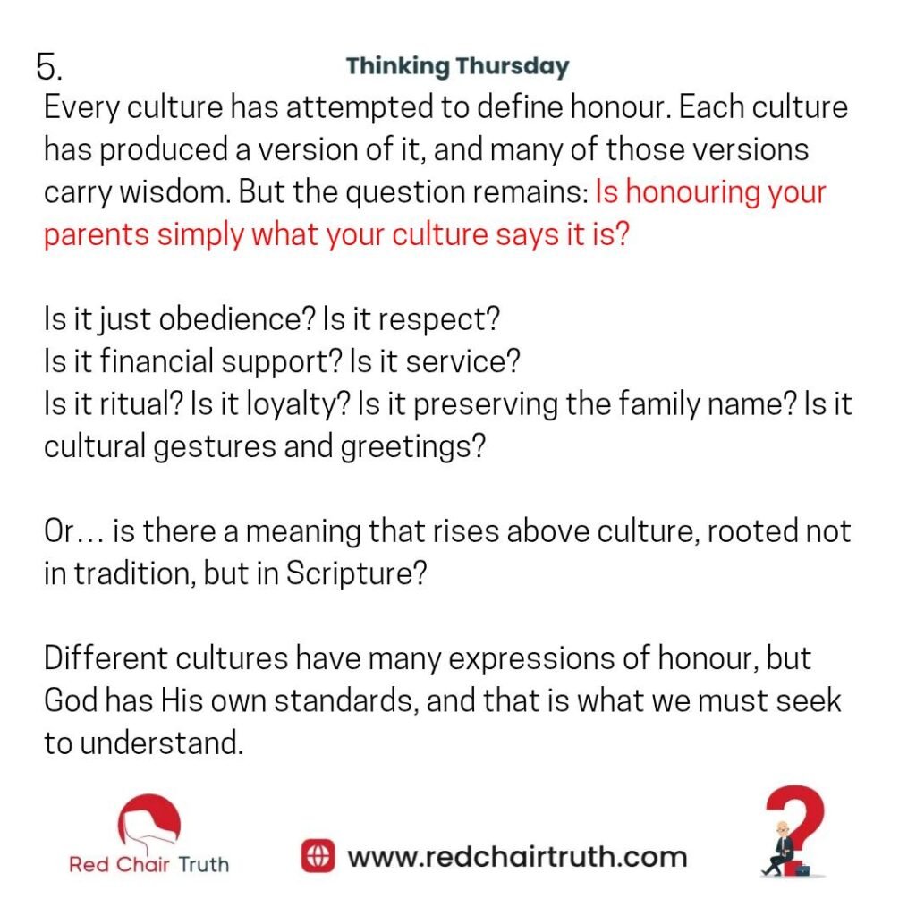 Every culture has attempted to define honour. Each culture has produced a version of it, and many of those versions carry wisdom. But the question remains: Is honouring your parents simply what your culture says it is?