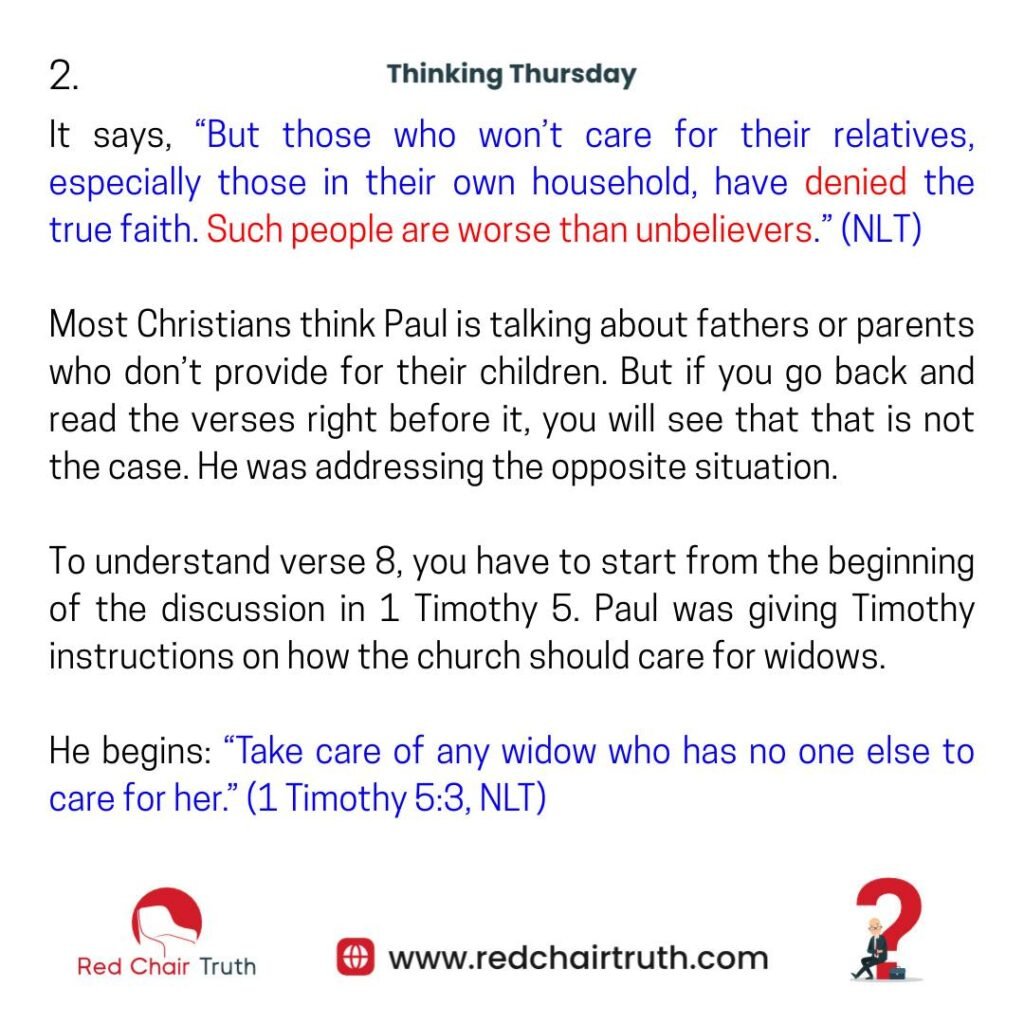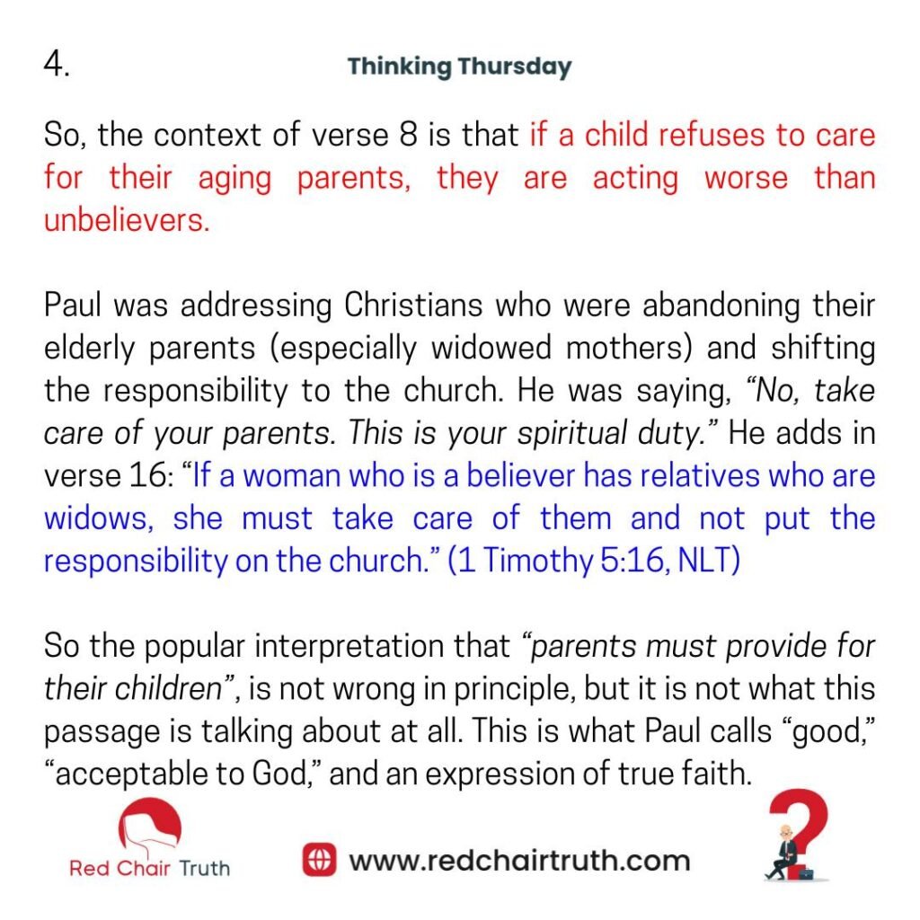 1 Timothy 5:8 is a verse often misapplied; christians almost always apply it to parents.