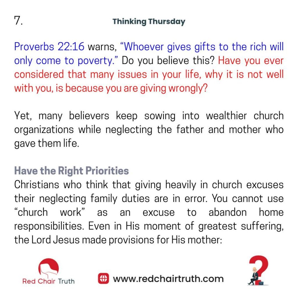 Yet, many believers keep sowing into wealthier church organizations while neglecting the father and mother who gave them life.