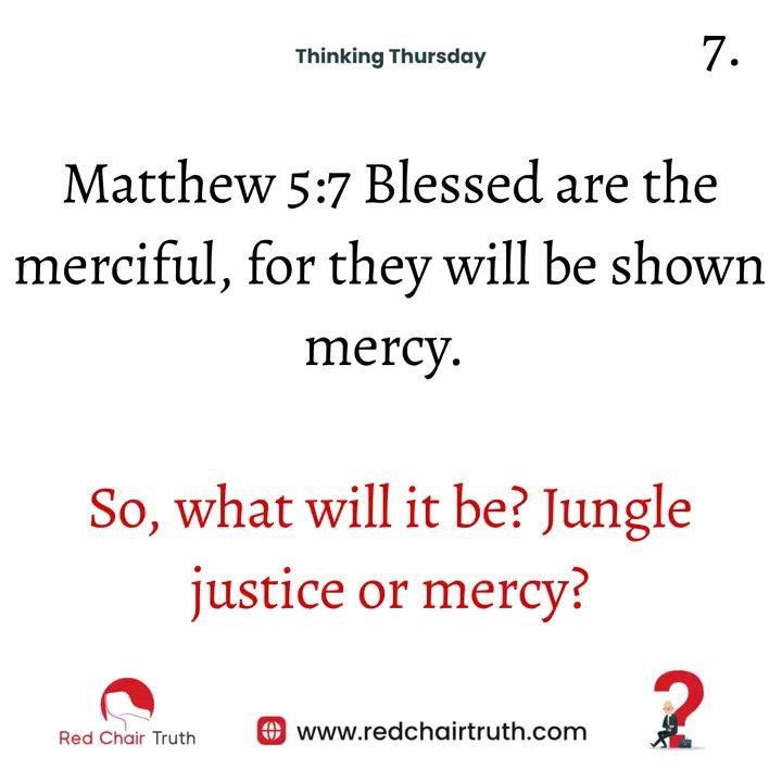 Matthew 5:7 Blessed are the merciful, for they will be shown mercy.