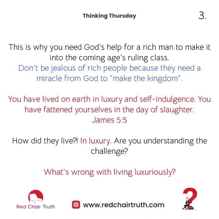 This is why you need God’s help for a rich man to make it into the coming age’s ruling class. Don’t be jealous of rich people because they need a miracle from God to “make the kingdom”.