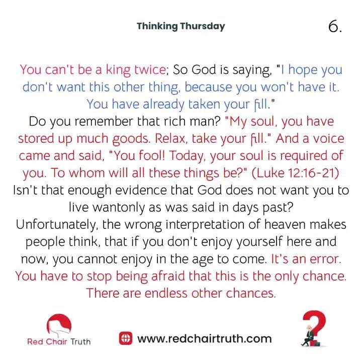 Isn’t that enough evidence that God does not want you to live wantonly as was said in days past? Unfortunately, the wrong interpretation of heaven makes people think, that if you don’t enjoy yourself here and now, you cannot enjoy in the age to come. It’s an error.