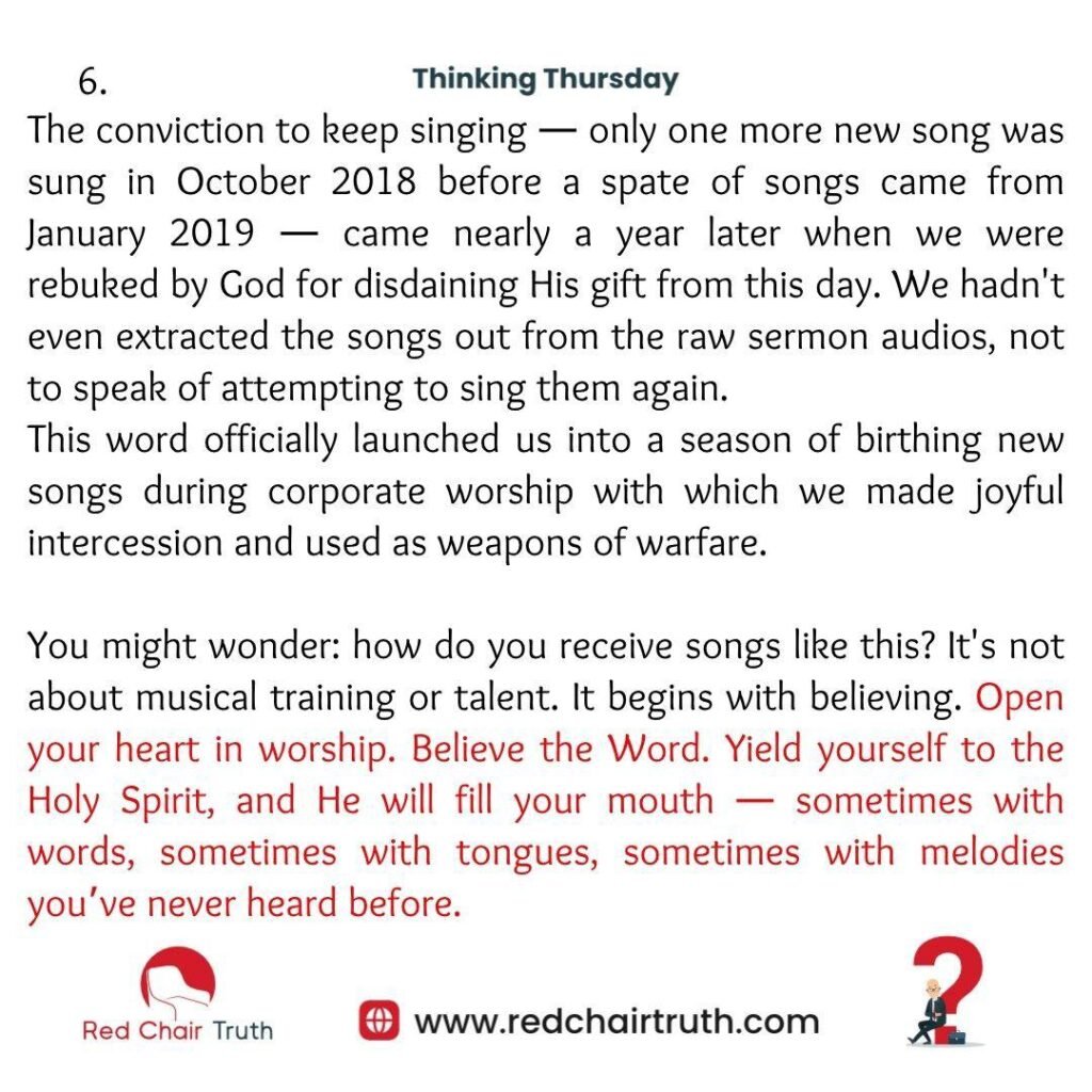You might wonder: how do you receive songs like this? It’s not about musical training or talent. It begins with believing. Open your heart in worship. Believe the Word. Yield yourself to the Holy Spirit, and He will fill your mouth — sometimes with words, sometimes with tongues, sometimes with melodies you’ve never heard before.