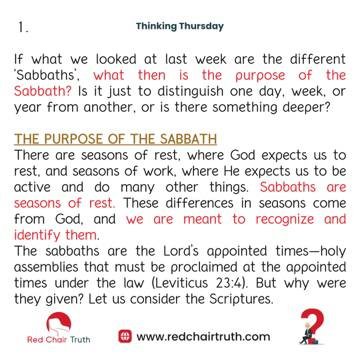 If there are these different ‘Sabbaths’, what then is the purpose of the Sabbath? Is it just to distinguish one day, week, or year from another, or is there something deeper?