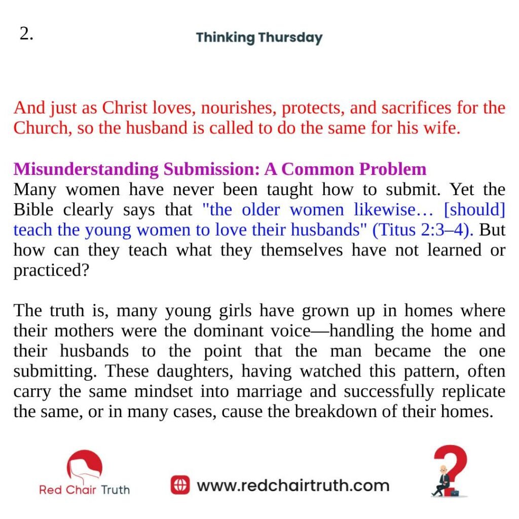 Ponder on these, and in the next part, we will begin to uncover some real-life applications of submission in the home.