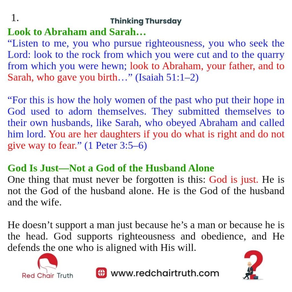 One thing that must never be forgotten is this: God is just. He is not the God of the husband alone. He is the God of the husband and the wife. He doesn’t support a man just because he’s a man or because he is the head. God supports righteousness and obedience, and He defends the one who is aligned with His will.