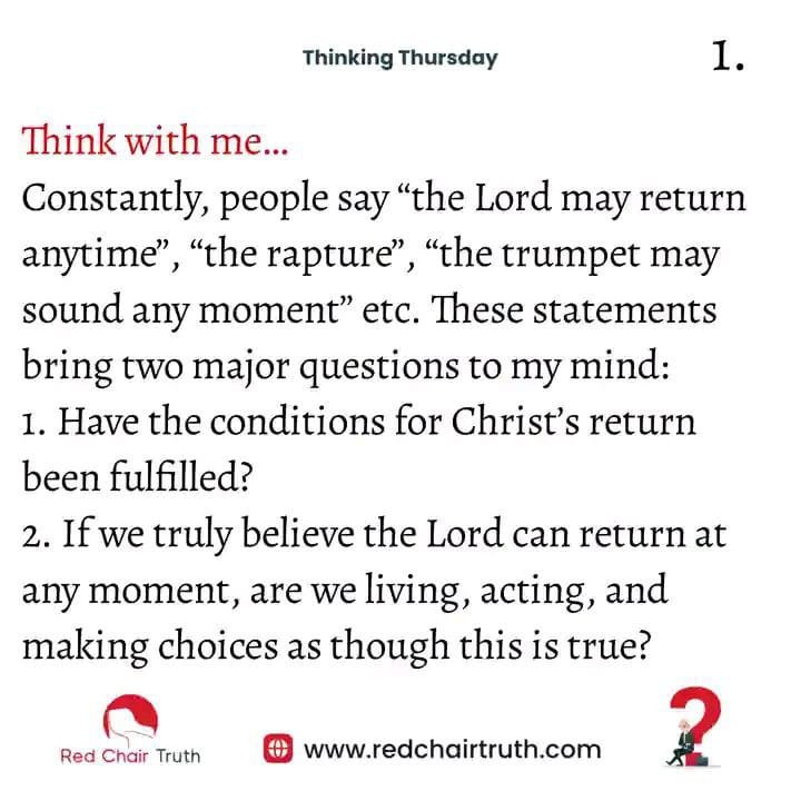 Constantly, people say “Jesus may return anytime”, “the rapture”, “the trumpet may sound any moment” etc. These statements bring two major questions to my mind: