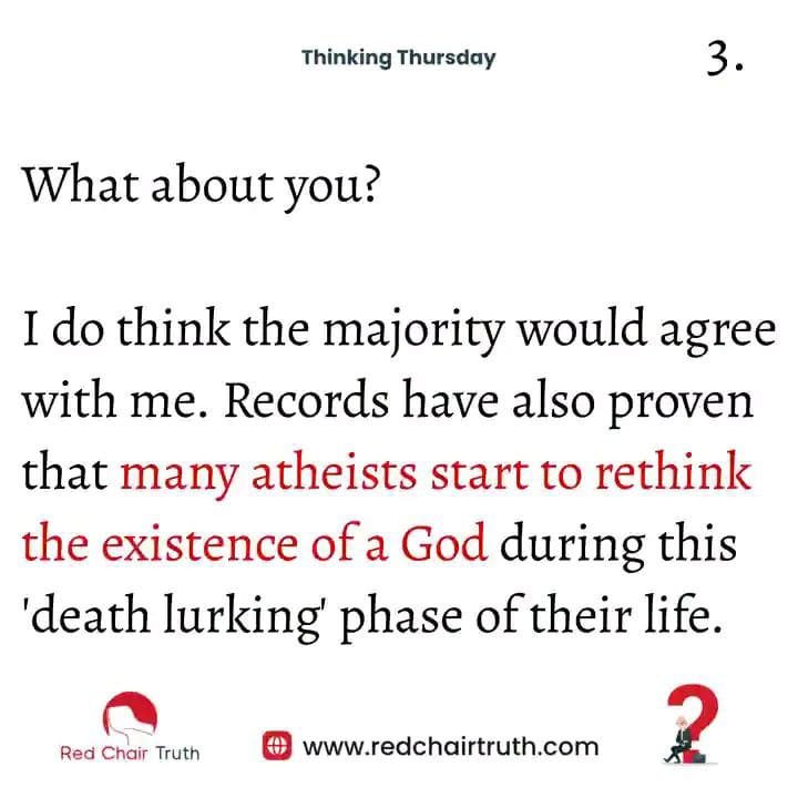 I do think the majority would agree with me. Records have also proven that many atheists start to rethink the existence of a God during this ‘death lurking’ phase of their lives.