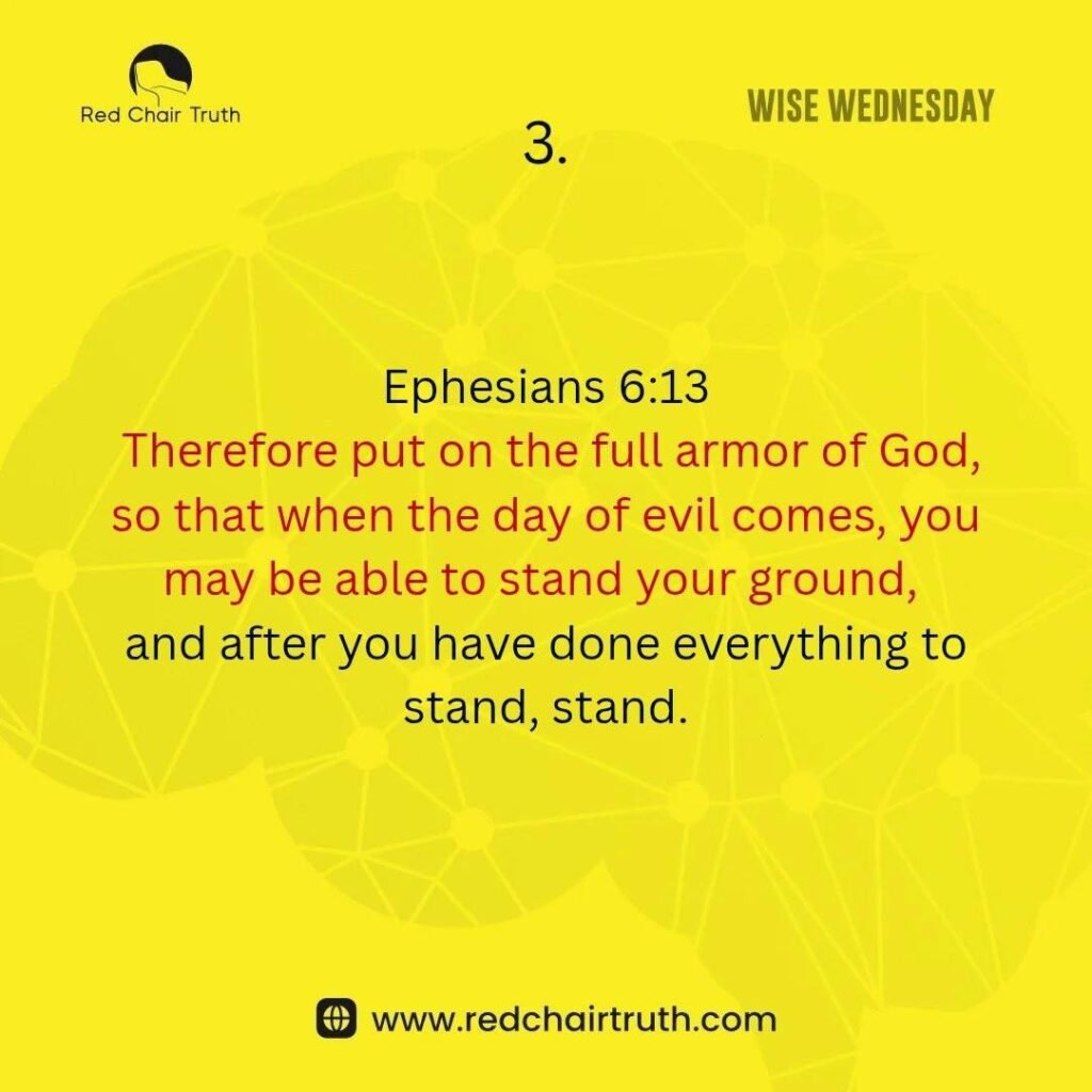 Therefore put on the full armor of God, so that when the day of evil comes, you may be able to stand your ground, and after you have done everything to stand, stand.