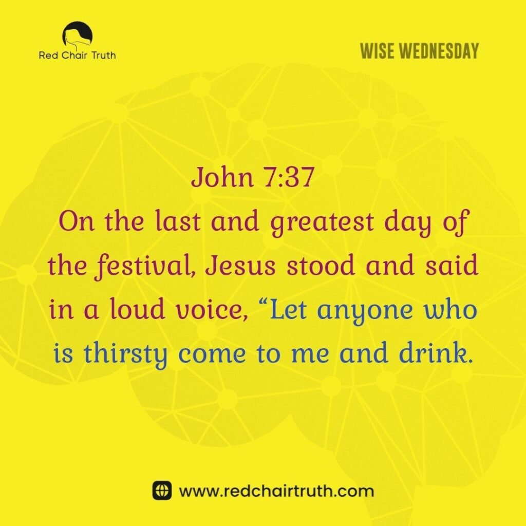 On the last and greatest day of the festival, Jesus stood and said in a loud voice, “Let anyone who is thirsty come to me and drink.