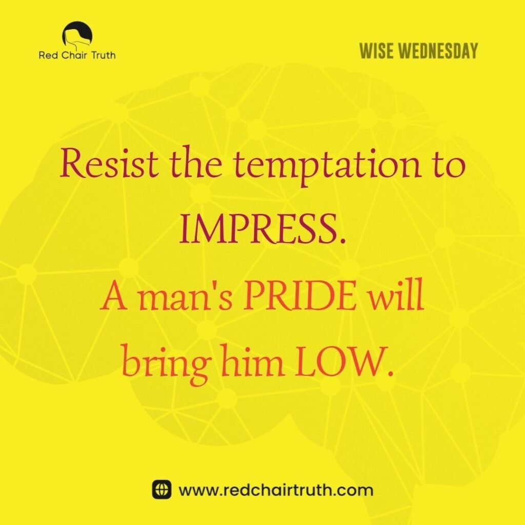 Quote: Resist the temptation to IMPRESS. A man’s PRIDE will bring him LOW.