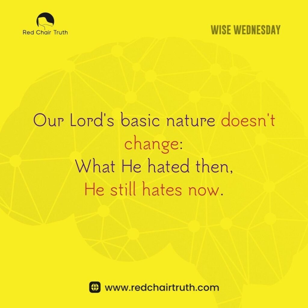 Quote: Our Lord’s basic nature doesn’t change: What He hated then, He still hates now.
