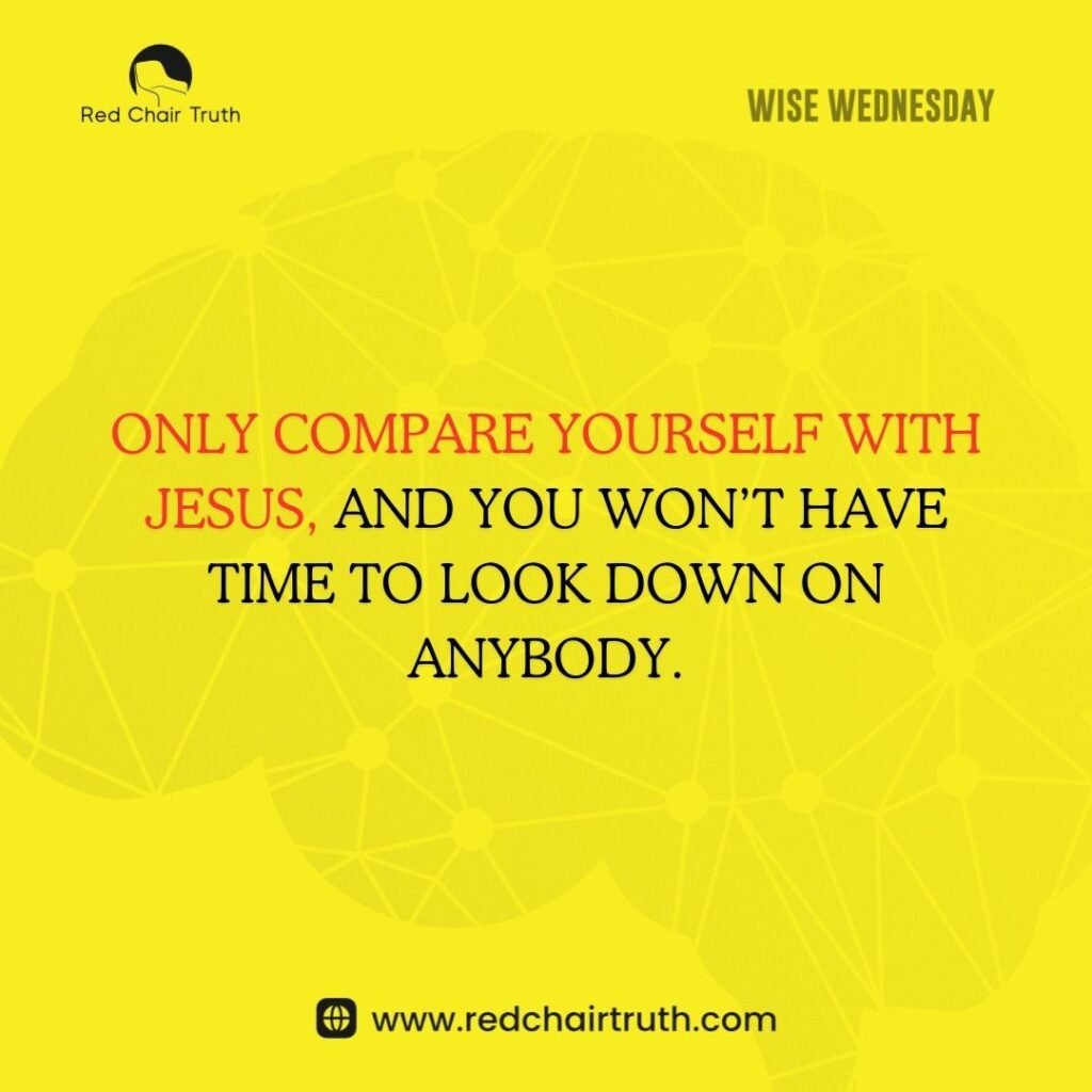 Quote: ONLY COMPARE YOURSELF WITH JESUS, AND YOU WON’T HAVE TIME TO LOOK DOWN ON ANYBODY.