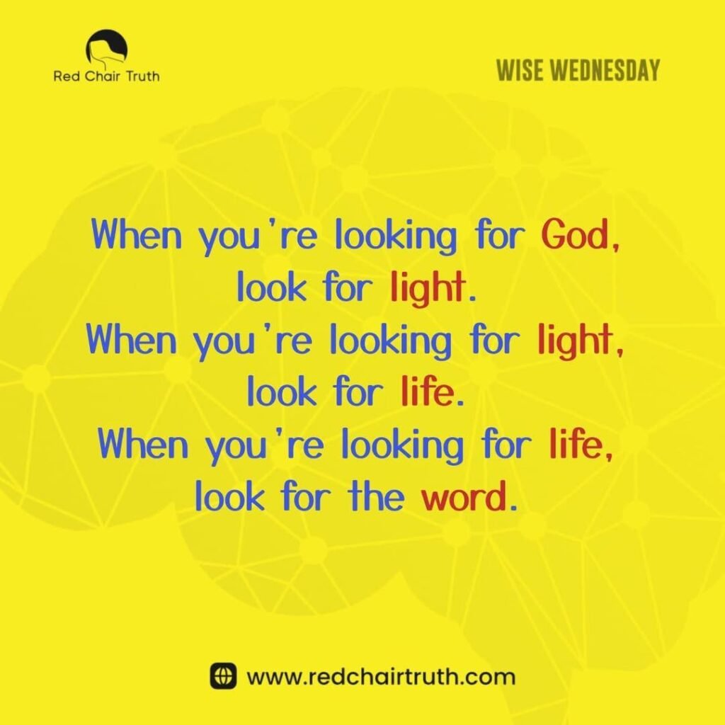 Quote: When you’re looking for God, look for light. When you’re looking for light, look for life. When you’re looking for life, look for the word.
