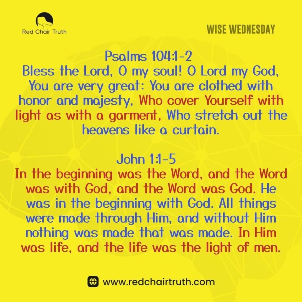 Bless the Lord, O my soul! O Lord my God, You are very great: You are clothed with honor and majesty, Who cover Yourself with light as with a garment, Who stretch out the heavens like a curtain.