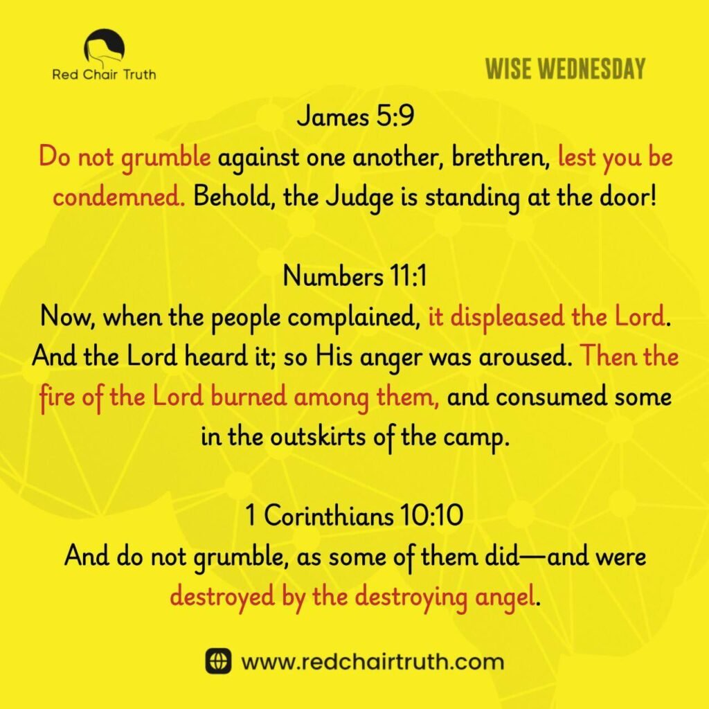 Do not grumble against one another, brethren, lest you be condemned. Behold, the Judge is standing at the door!