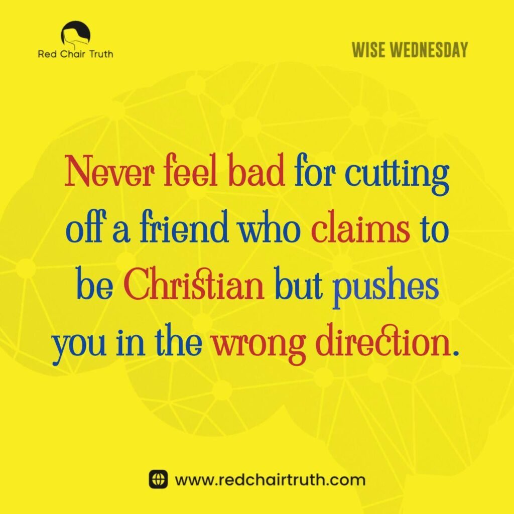 Quote: Never feel bad for cutting off a friend who claims to be Christian but pushes you in the wrong direction.