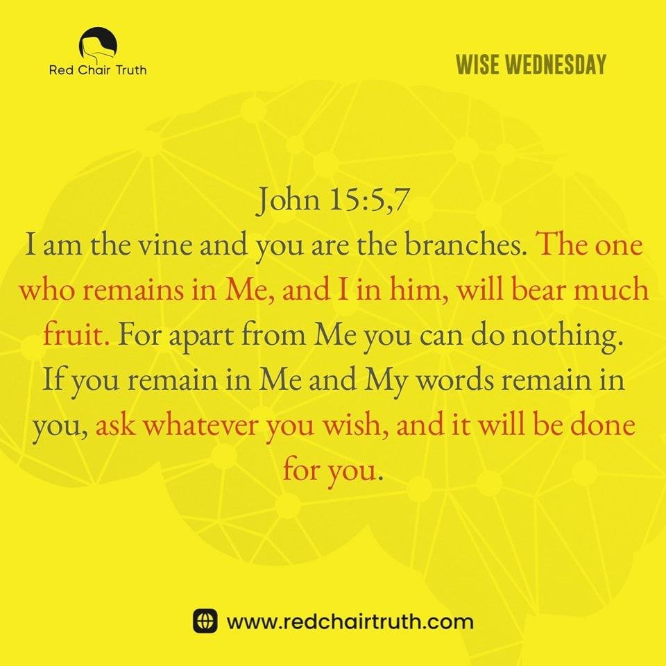I am the vine and you are the branches. The one who remains in Me, and I in him, will bear much fruit. For apart from Me you can do nothing. If you remain in Me and My words remain in you, ask whatever you wish, and it will be done for you.