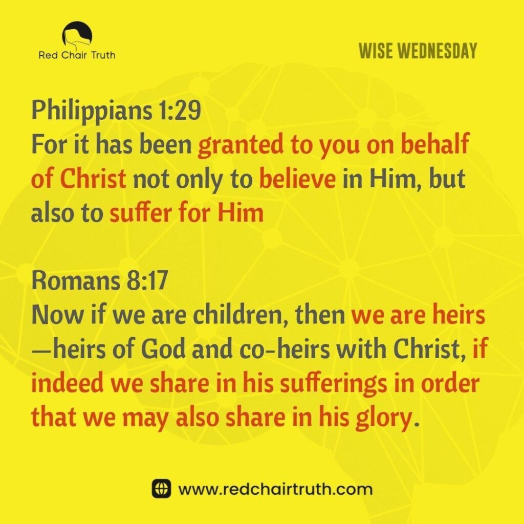 Now if we are children, then we are heirs -heirs of God and co-heirs with Christ, if indeed we share in his sufferings in order that we may also share in his glory.