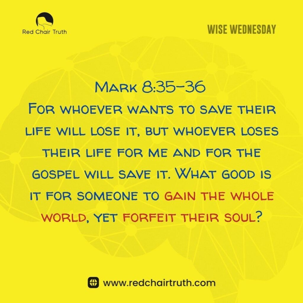 For whoever wants to save their life will lose it, but whoever loses their life for me and for the gospel will save it. What good is it for someone to gain the whole world, yet forfeit their soul?