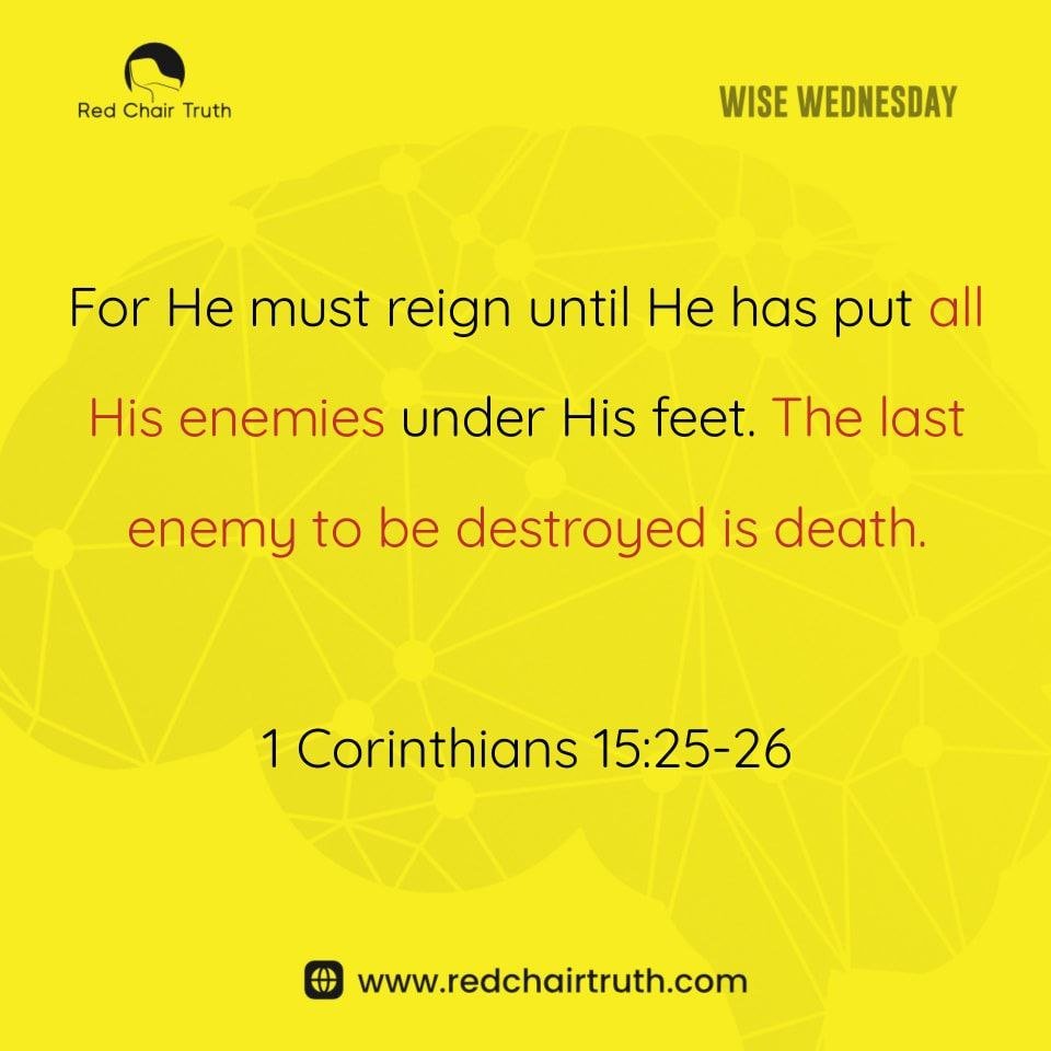 For He must reign until He has put all His enemies under His feet. The last enemy to be destroyed is death.