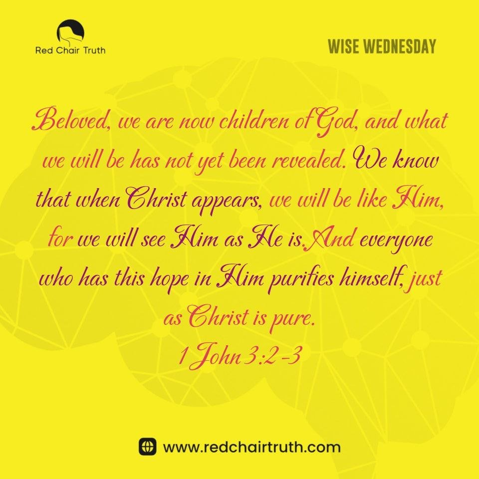 Beloved, we are now children of God, and what we will be has not yet been revealed. We know that when Christ appears, we will be like Him, for we will see Him as He is. And everyone who has this hope in Him purifies himself, just as Christ is pure.