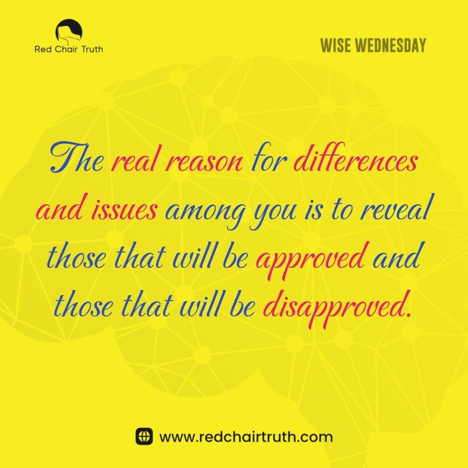 Quote: The real reason for differences and issues among you is to reveal those that will be approved and those that will be disapproved.