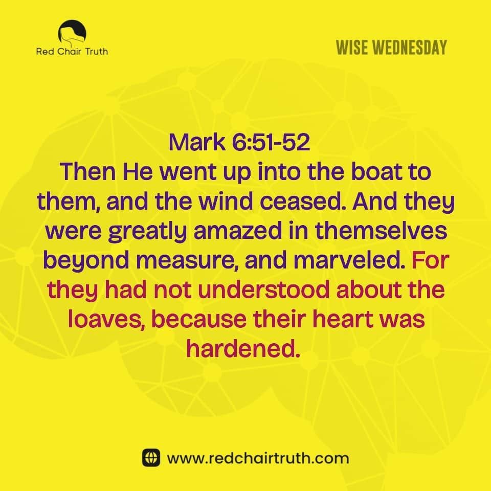 Then He went up into the boat to them, and the wind ceased. And they were greatly amazed in themselves beyond measure, and marveled. For they had not understood about the loaves, because their heart was hardened.